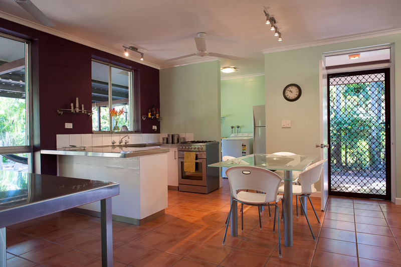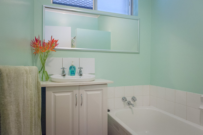 The modern open plan kitchen/dining/lounge area features stainless steel bench tops, with crisp white louver doors and ceramic floor tiles to create a light and airy feel. The master bedroom and main living area are air conditioned with split systems and there are ceiling fans throughout the house.