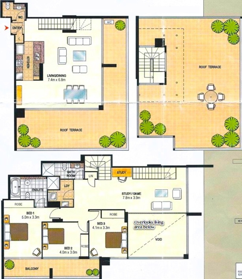 1. It's BIG! 314sqm penthouse with 3 levels, 3 double bedrooms (16.5sqm master vedroom with spacious ensuite), 2.5 bathrooms, 50sqm Miele kitchen/living/dining area, 30sqm rumpus/study area (overlooks living area below), 45sqm wraparound entertainer's terrace, 91sqm private rooftop terrace (perfect for rooftop garden, outdoor kids play area, golf putting green, or even a greenhouse/office/rumpus room - subject to strata/council approval), 2 car spaces (29.7sqm), and lockup storage (5.6sqm). Total of 349.3sqm on title.