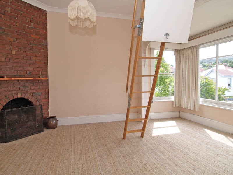 Houses a few doors down in this street that have been renovated have sold for $500k because the location is fabulous. It’s just around the corner from the University of Tasmania and walking distance to the Sandy Bay shops, all on a level allotment with mountain views from the backyard and front room, and water glimpses from the attic window.