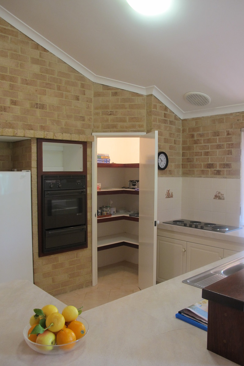 * Tiled Country kitchen with large pantry and double space for fridge/freezer;