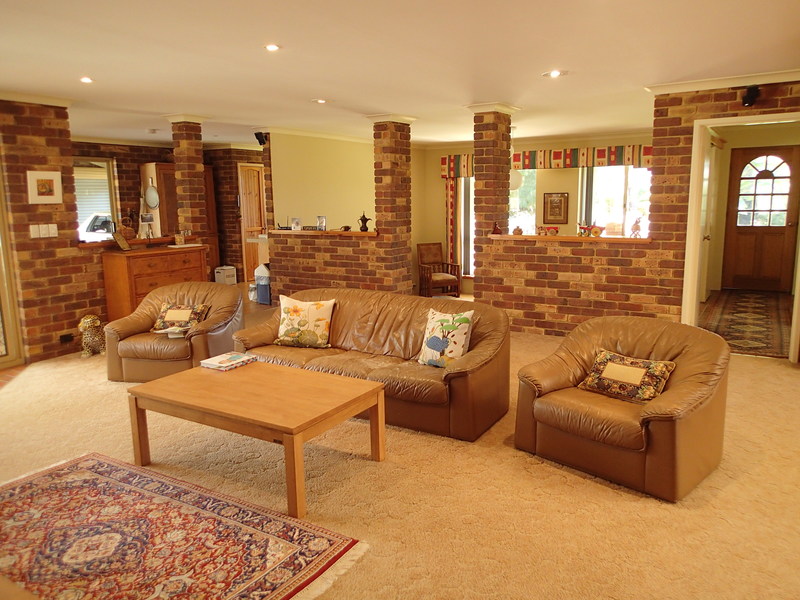 There is a large living area warmed by a slow combustion heater from which steps lead down to a sunken lounge which could easily serve as a theatre room.