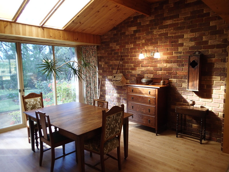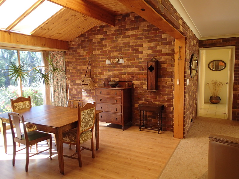 A separate dining room has lovely views of verdant lawns and colourful garden beds.