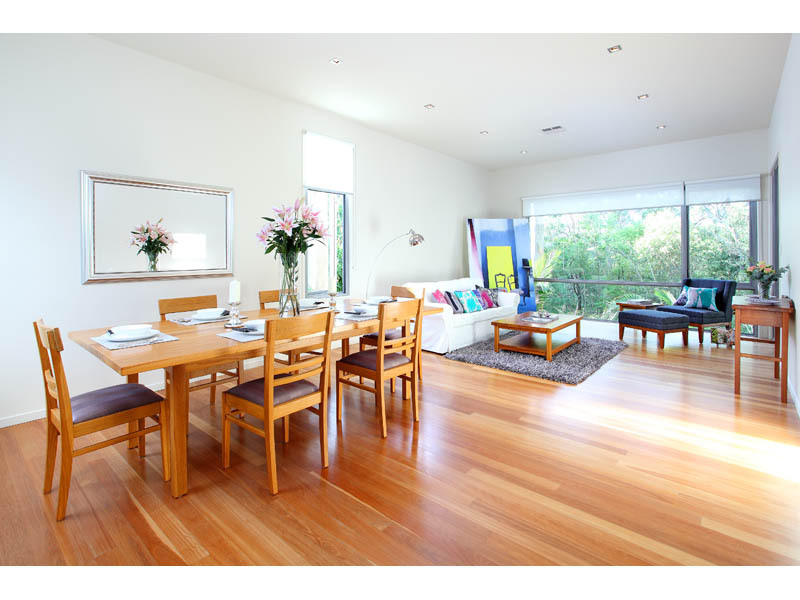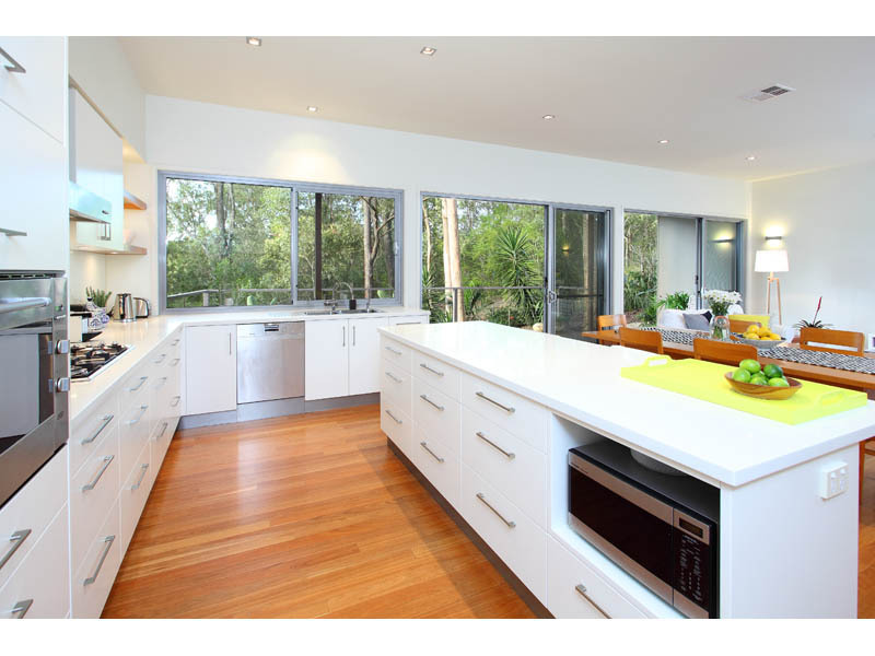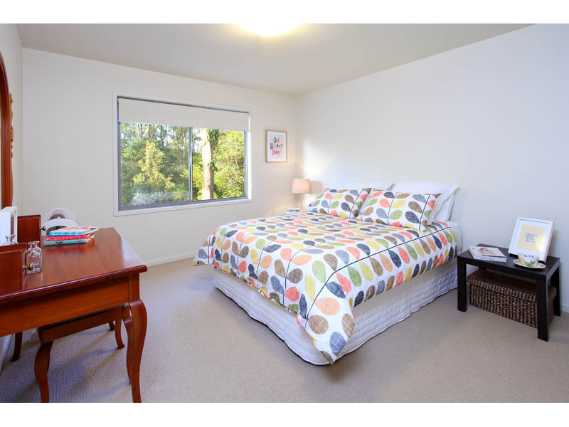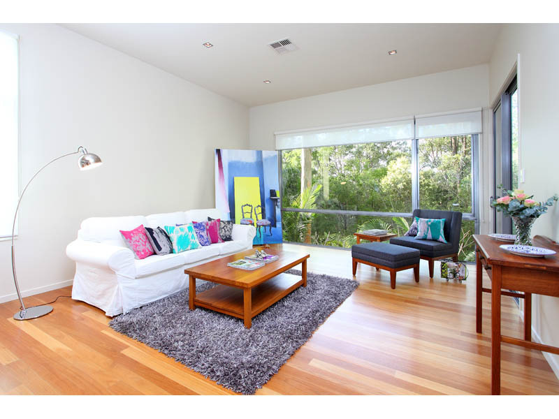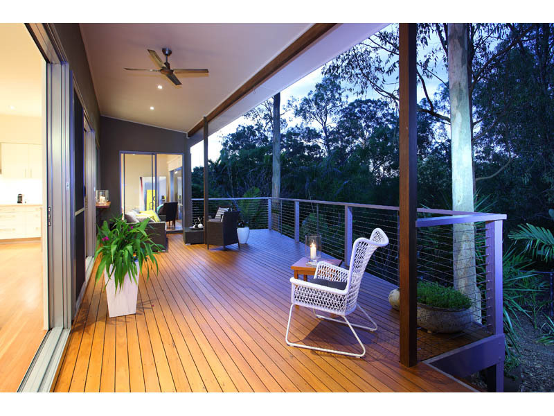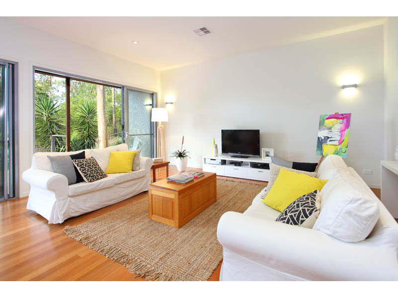 The family room has tall glass sliding doors. These open out onto a spacious timber deck overlooking the reserve and tropical garden which is ideal for alfresco dining or lounging about. There is also a natural gas supply outlet for your favourite BBQ.