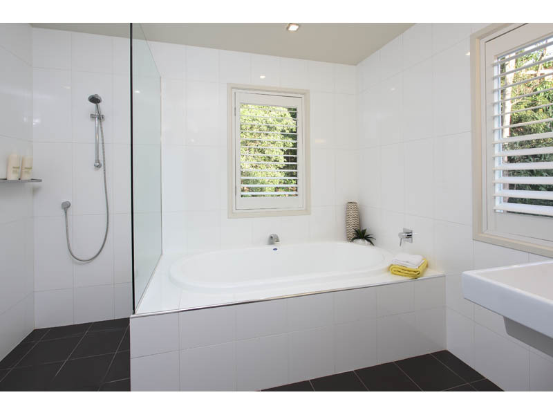 There is a spacious three-way bathroom to this level which is cleverly designed with two basins, expansive marble bench top, wall to wall cabinet mirrors, a luxurious bath and frameless glass shower all wrapped in large, classic floor to ceiling tiles.