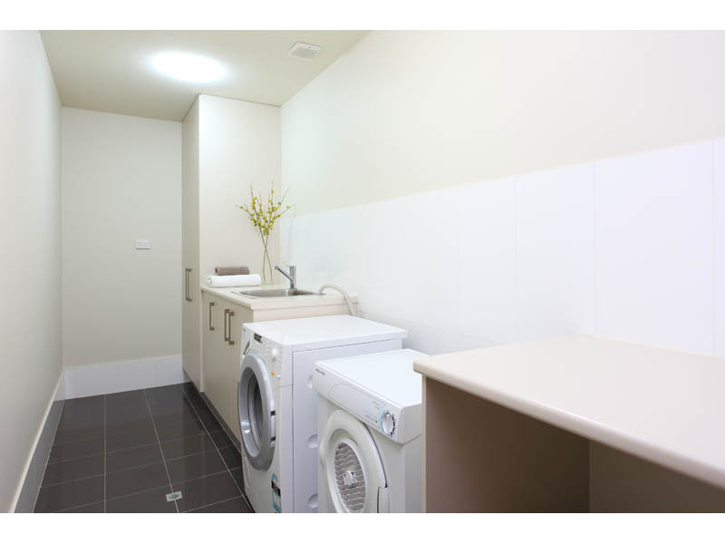 The first-class kitchen with its large smart stone bench tops is perfect for entertaining and family living. This kitchen is well designed, using classic contemporary features. These include numerous soft closing drawers, two pantries, a large gas cook top and fan forced oven and Miele dishwasher.