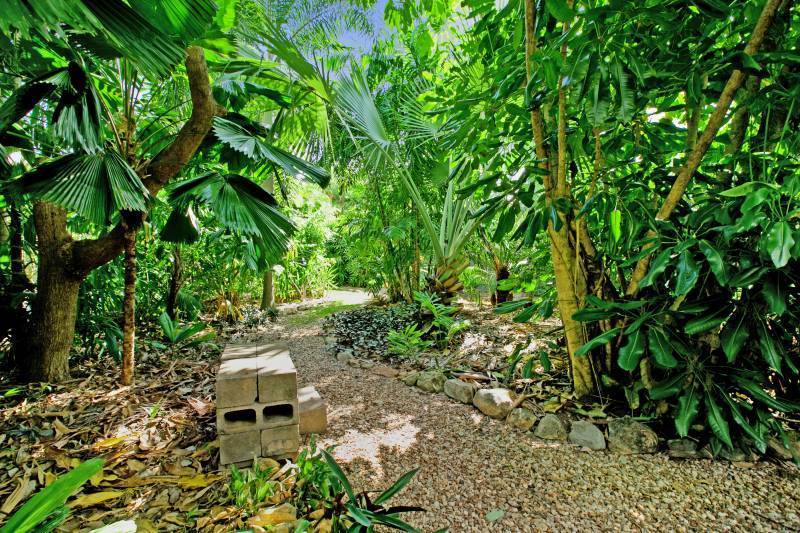 Lush tropical gardens, with many rare palms and cycads, surround the house and provide coolness and privacy. Automatic reticulation means minimal work to maintain the gardens. The site is securely fenced.