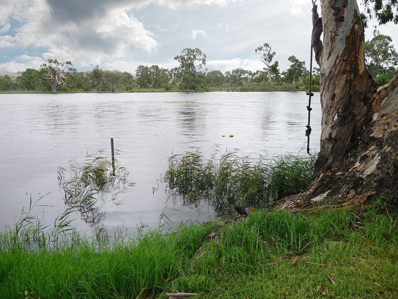 There are 2 large bathrooms (one downstairs for convenient access after a day of river sports) and parking for 3 cars and a boat downstairs in the undercover garage area with drive through access via roller doors to the riverfront .