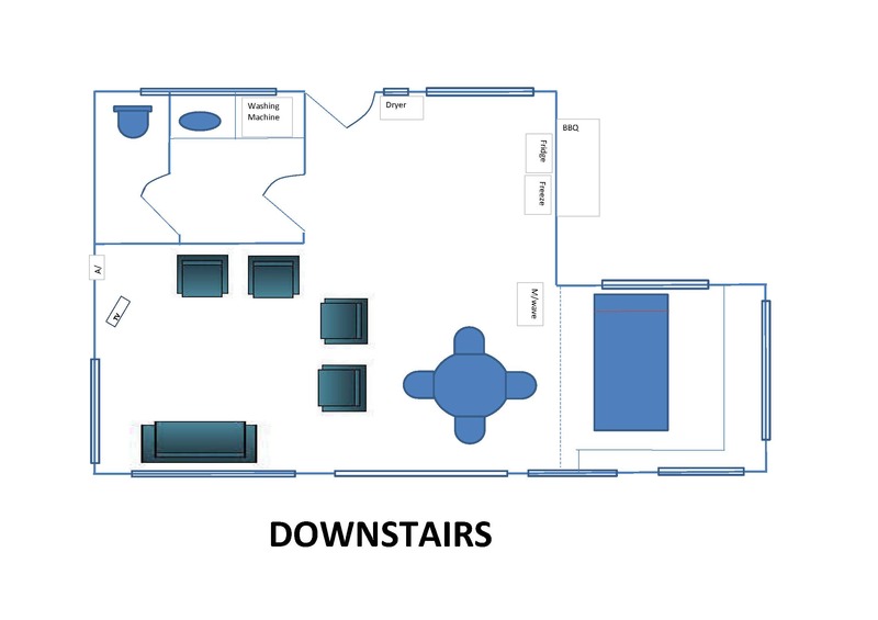 Downstairs is a second toilet, laundry, plus a large open plan area currently deployed as bedroom, lounge and dining (perfect for the kids or guests).