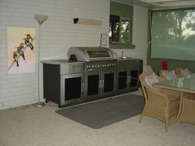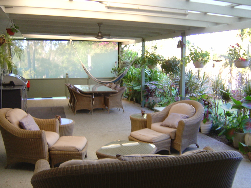 Huge covered Patio â€" (4.83m x 11.34m) Outdoor Kitchen with sink. Fan. Outdoor tap. Leading to secluded inner garden with - your own tropical oasis Swim Spa. Domed shade covers the separate spa & swim pool with swim jets. It has an Elite pool cover & pool shed.