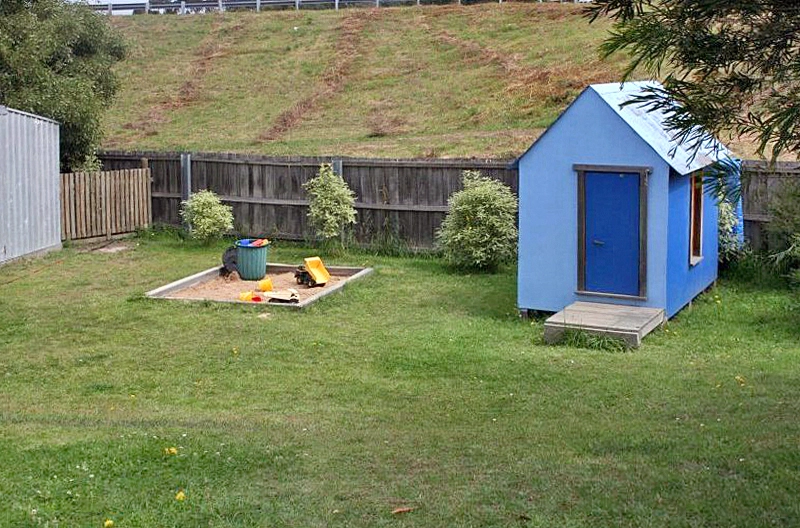 Fully fenced 749m2 corner block with a backyard cubby house and sandpit ready for the kids